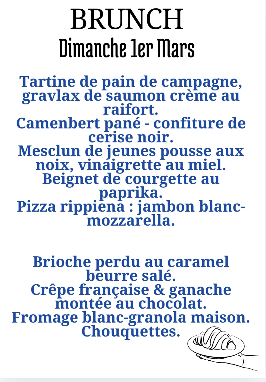 Nous vous proposons un brunch le dimanche 1er Mars.